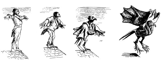 Рис. 2.3. Вот так иллюстратор английского юмористического журнала Punch (1871) представлял себе «эволюцию» птицы из человека