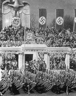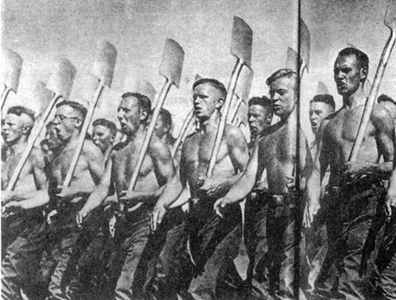 Парады обнаженных по пояс мужчин с лопатами и бревнами на плече, отбывающих имперскую трудовую повинность, были особенностью нацистского режима, которая очень часто бросалась в глаза иностранцам. Во время партийнйх съездов в Нюрнберге Адольф Гитлер получал от этих шествий такое же удовольствие, как от спортивных выступлений молодых солдат и членов гитлерюгенда. Кроме того, он также заботился о том, чтобы самому производить приятное впечатление. Перед партийными съездами фюрер специально сбрасывал вес, чтобы выглядеть стройным.