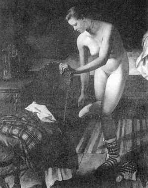 В третьем рейхе женщины были не только агрегатом для производства множества светловолосых детей, но и средством для удовлетворения сексуальных потребностей мужчин, они должны быть готовы по первому требованию лечь в постель. «Зрителям представлена клинически чистая безвольная нордическая женская красота в наилучшем ее проявлении. Несмотря на всю свою неприкрытую наготу, она предстает стерильным, лишенным сексуальности созданием» (Габриэль Хузтер). Обнаженная девушка, направляющаяся прямо в кровать, несет в себе черты альпийского шарма.