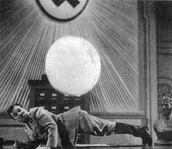 Этот голливудский фильм, выпущенный в 1940 году, в котором Чаплин высмеял Гитлера, должен был подготовить американцев к войне с Германией. Кроме всего прочего, Гитлера показали вместе с «голубыми». В заключительной сцене фильма эта характеристика была доведена до гротеска. Апогеем стали анальные игры, когда великий диктатор уравновешивает глобус на своей заднице и ударами ягодиц заставляет подлетать его к потолку.