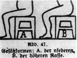 Методы типологии могут быть полезны для грубой систематизации разнообразных проявлений реальности. Однако нередко они становятся исходным пунктом весьма вредных предубеждений. В основе свойственного Гитлеру разделения всех людей на арийцев и евреев лежали гомоэротические предпочтения, облаченные в тогу научной системы. Еще более четко это проявлялось у Ланца фон Либенфельса, который опубликовал в своем журнале «Остара» схему разделения людей по расовым признакам на основе формы таза и способа посадки: А – низшая, В – высшая раса.