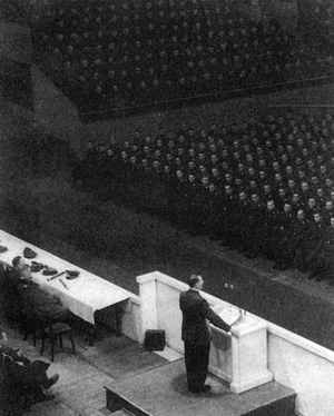 Выступление Адольфа Гитлера перед 5000 молодых лейтенантов в берлинском Дворце спорта 18 сентября 1940 года.