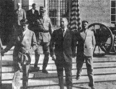 Фотография запечатлела Гитлера в момент достижения своей цели. В августе 1934 года во время последнего посещения больницы в Нойдеке он убедится, что с тяжело больным Гинденбургом, который стоял на его пути к высшей власти, все кончено. Однако законы политических интриг требовали от него скрывать свою радость. Изобразив на лице траурное выражение, он идет рядом с сыном Гинденбурга Оскаром и государственным секретарем Майснером. Гитлеру настолько нравились траурные мероприятия, что он не упускал ни одной возможности, чтобы их провести.