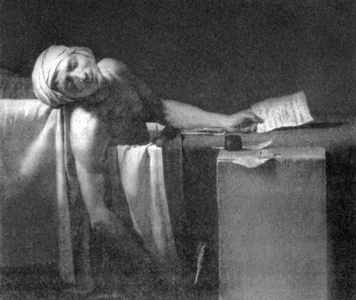 Прежде чем посвятить свой гений прославлению Наполена, художник Жак-Луи Давид (1748–1825) воспевал Французскую революцию 1789 года. В знаменитой картине «Смерть Марата» он использовал приемы христианской иконографии мучеников в целях политической пропаганды.