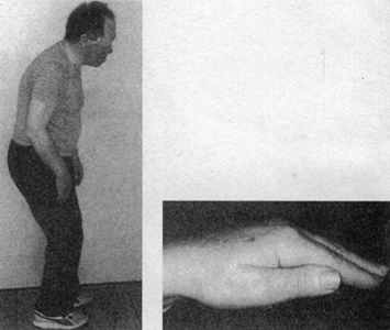 Адольф Гитлер страдал болезнью Паркинсона, что особенно заметно проявилось в последние месяцы его жизни. На иллюстрациях из учебника неврологии видны примеры типичных симптомов, свойственных фюреру: сгорбленная осанка, согнутая кисть руки (вверху на странице слева) и пристальный взгляд (слева вверху). 20 апреля 1945 года он пробует скрыть нарушение мимики улыбкой (справа вверху). На фотографии, сделанной 12 марта 1944 года на Моозланеркопф, где он снят вместе с Гиммлером, Гитлер выглядит немного сгорбленным (на странице слева).