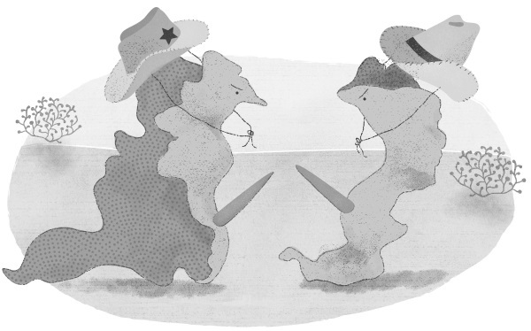 В волшебном морском царстве мужское достоинство, полученное плоским червем в дар от природы-матери, – единственное и незаменимое оружие. Двое соперников просто сходятся в честном поединке и схлестываются своими могучими мужскими клинками в беспощадном поединке за главенство, и каждый так и норовит насадить другого на свой кукан.