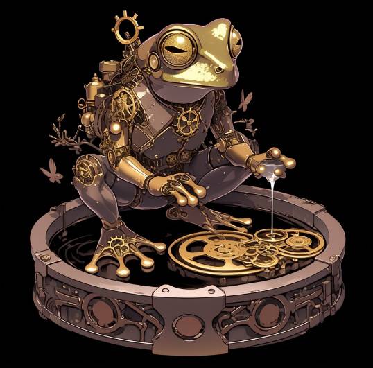 Из пола выезжает платформа, на которой действительно сидит механическая лягушка. Почувствовав свободу, она начинает дергаться, словно пробуждается от долгого сна. Из её тельца доносится мерный стук, будто бьется механическое сердце. Размером она с вполне обычную лягушку, легко уместится на ладони.