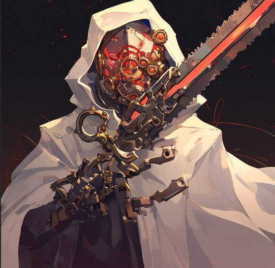 Слева оказывается человек, очень напоминающий мехалита, но я вижу, что это живой человек-мужчина в особой броне и с прикрепленной к правой руке пилой. Металлическая маска скрывает лицо даже от «Энерговиденья», а белоснежный плащ с капюшоном выглядит даже стильно. Теперь тоже такой хочу.