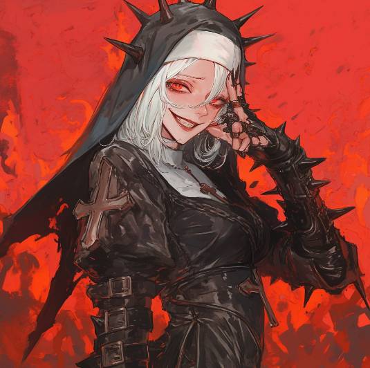 Произошла самая странная встреча, ведь не ожидал встретить здесь странную девушку, одетую как католическая монахиня. Образ настолько гротескный, что я не думаю, что эта особа сильно религиозна.