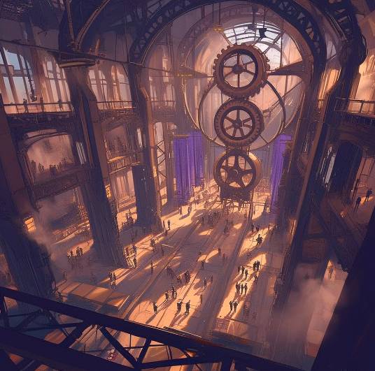 Карета привезла нас к большому многоуровневому зданию, словно это местный торговый центр. В этой части Кузнеграда действительно как в современном мегаполисе есть разные по высоте дороги, которые могут привести к одному месту, но окажешься на разных уровнях. Мы входим через платформу третьего этажа, так что внутри Вестибулума оказываемся на том же уровне.