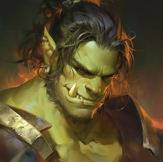 Я точно видел, что орки направились на второй корабль, так что не ожидал, что один из них сумеет запрыгнуть на наш. Зеленокожий детина мускулист и высок, имеет длинные черные волосы, собранные в хвост, и короткую бородку. Облачен в не самые красивые доспехи, но оружия на виду нет. В его ауре, в отличии от того орка с секирой, я не вижу жажды убивать, наблюдаю скорее веселую беззаботность, что выглядит странно. Легкая улыбка это лишь подтверждает, хотя непривычно видеть большие торчащие клыки.