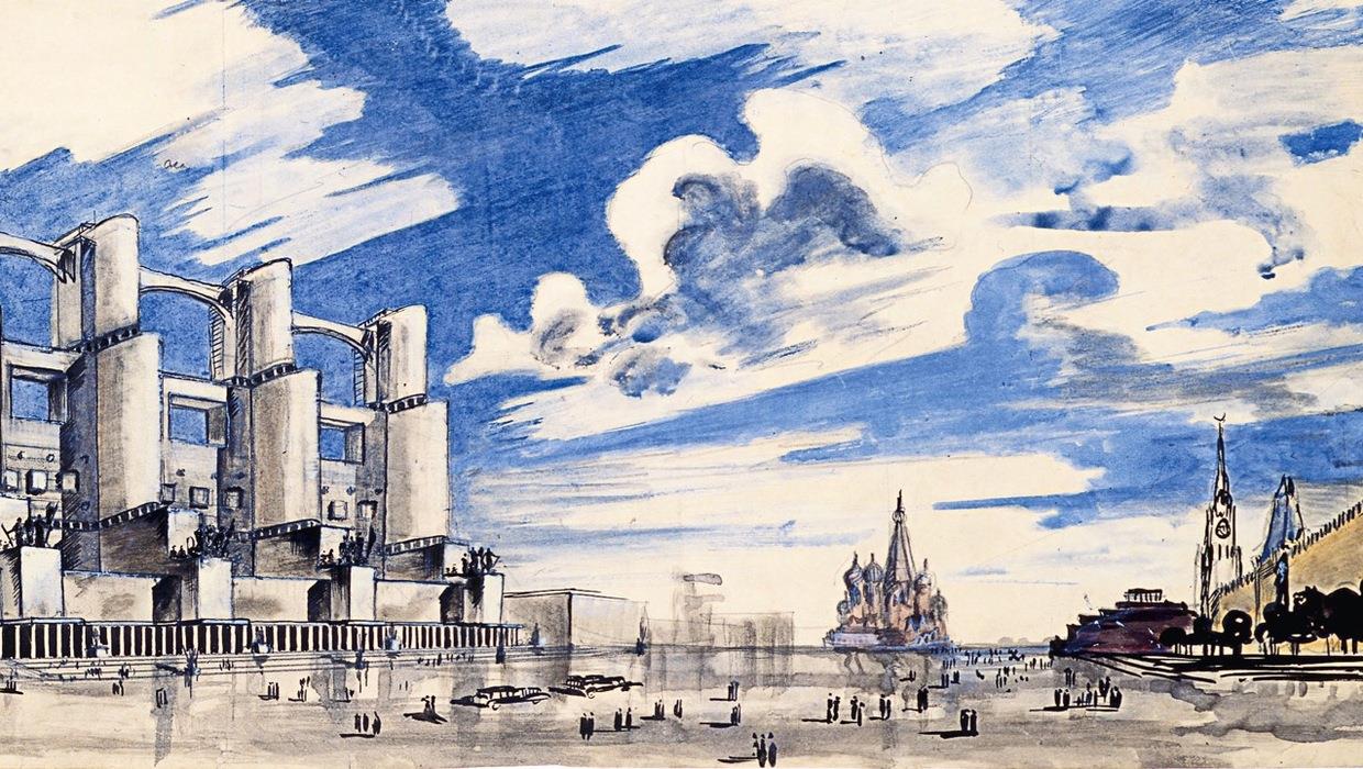 Видел Краслен и прозрачные здания-шары, подвешенные на опорах, и здания-цилиндры, похожие на поставленные стоймя бесконечно длинные папиросы, и здания-полусферы, словно выросшие из земли по приказанию человека, как грибы-дождевики в ответ на влагу. Поняв, что не сможет увидеть и сотой доли столичных чудес, Краслен сел в авиобус. Плексигласовый вагончик на пропеллере легко поднялся ввысь, туда, где на крыше огромного дома читался ряд красных букв: «Даешь новый быт!».