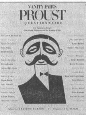 Опросник Пруста без устали кочует по страницам мировой прессы и в массмедиа несколько десятков лет. Он – из спасительного резерва редакторских приемов на случай, когда прочее надоело или не производит должного впечатления. Об известной французской ипостаси опросника я уже упомянул, а в Америке его прославил журнал «Vanity Fair», сделав своим spécialité de la maison[2]2