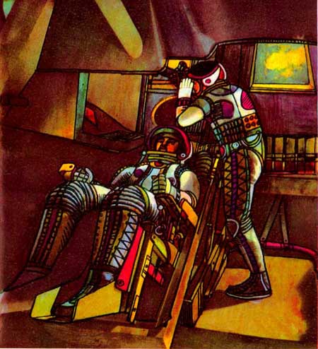 – Вот видишь. Всех кандидатов в члены космических экипажей просеивают сначала через частое сито неврологических и психических исследований. При этом обращают большое внимание на покладистость характера кандидата, на его умение жить в дружбе с людьми. Ведь часто бывает, что нервная система у человека находится в должном порядке, а жить в коллективе он не способен. Ведь умение жить в мире и согласии с товарищами, находясь длительное время в тесной кабине космического корабля, имеет решающее значение для успеха всей экспедиции. Что касается поведения космонавтов во время путешествия, то злейшим их врагом является безделье. Проблема безделья не существует при краткосрочных полетах, ибо космонавту приходится много работать. А вот во время длительных путешествий, или при пребывании на других планетах бездеятельность превращается в сложную проблему. К счастью, жизнь столь богата и интересна, в ней еще столько неисследованных сторон, что всегда можно найти себе занятие по душе, в особенности по углублению своих знаний. Поэтому космонавты, как правило, посвящают много времени различным областям знания. Кроме того, на космическом корабле, или на станции, всегда есть хорошая библиотека. Конечно, это не собрание тяжелых фолиантов – взять их с собой в космос нет возможности, – а коллекция микрофильмов. Есть также богатая фильмотека, позволяющая устраивать кинематографические сеансы, ну и, как правило, большая коллекция магнитофонных записей лучших музыкальных и вокальных произведений. Наконец, есть еще связь с Землей, на которой у каждого из нас осталась семья, близкие, и мы можем вести с ними беседу с расстояния многих миллионов километров. Иногда беседа по видеофону с кем-нибудь из близких оказывается лучшим лекарством против космической болезни.