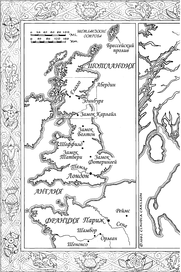 Хотя за последнее время Мария уже давно перестала чему-либо удивляться, ибо как объяснить тот факт, что она оказалась заложницей в собственной стране, решение о возвращении в которую далось ей с таким трудом! А ведь с того момента минуло всего несколько лет. Вдруг у нее возникла другая мысль: возможно, не стоило сюда приезжать. Да, в этой стране она родилась, здесь родился ее отец король Яков V… Но какие надежды она могла возлагать на это, если в памяти не возникали ни годы, проведенные здесь, ни даже люди, окружавшие ее в детстве. В ее воспоминаниях это по-прежнему было белым пятном. В этот хмурый день существовала и другая причина ее нерешительности, поскольку, набравшись смелости приехать сюда, ей пришлось собирать в памяти кусочки и обрывки легенд, которые она слышала, живя при французском дворе.