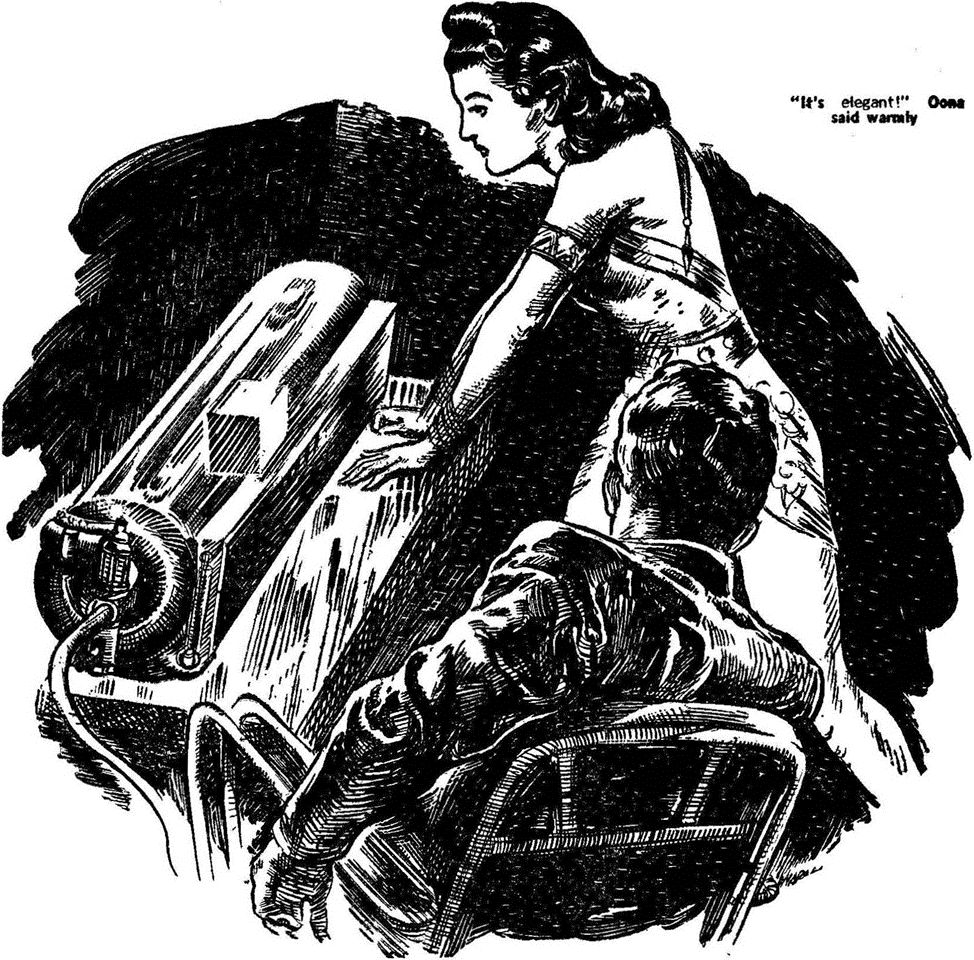 Уна отступила на шаг и посмотрела на эту штуку. Аппарат был около трёх футов в длину, имел форму довольно толстой сигары и был покрыт каким-то блестящим металлом с голубоватым отливом. Уна не знала почему, но по какой-то причине он напомнил ей гроб, предназначенный для необычайно маленького взрослого или ребёнка.