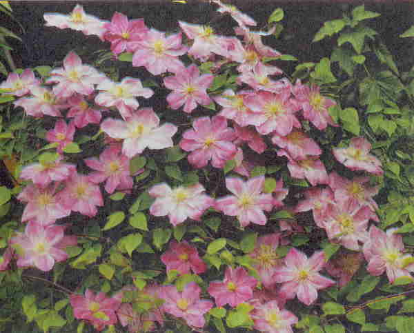 Цветёт обильно или умеренно с мая (на юге) по август. Его нежно-розовые цветки эффектно контрастируют с сине-фиолетовыми цветками других сортов. Рекомендуется повсеместно для вертикального озеленения.