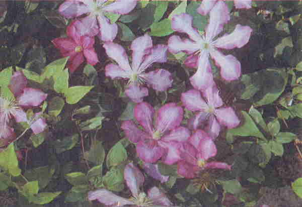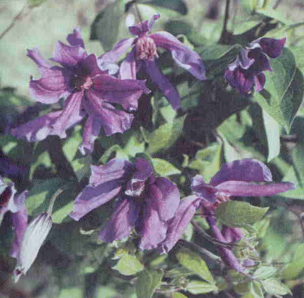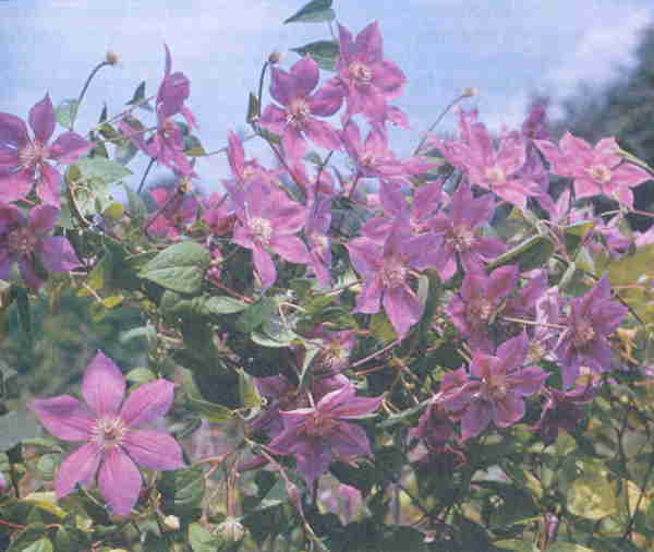 Цветки диаметром 8 см, сиреневато-пурпурные. Побеги длиной до 4 м. Они усыпаны цветками с конца июня до заморозков.