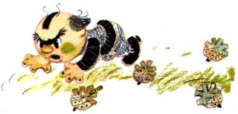 Петрушке необыкновенно повезло, что Атьдва вздумалось повесить его на той самой липе, где Копилка сушил свое белье, выстиранное в ручье. Поэтому-то мальчику удалось спастись и оставить в дураках генерала и всех его помощников. «Теперь никто меня не догонит», – обрадовался Петрушка, и его красная рубашка замелькала между зелеными кустами. Но оказалось, что убежать от генерала было не так просто. Атьдва катился за ним на колесиках, придерживая суму, чтобы медали не звенели так громко и не спугнули беглеца. Копилка после того, как из его туловища вытряхнули все деньги, стал легким, и каждое дуновение ветра гнало его вперед. Он обогнал генерала и его слуг и на повороте тропинки заметил красную рубашку. Но когда он выбежал на полянку, мальчика и след простыл. Копилка посмотрел в одну сторону, в другую, заглянул подкует, и в этот момент чуть ему не на голову упала шишка. Копилка поднял голову вверх. Там ничего не увидел и со злостью наступил на шишку ногой. Вдруг между чешуйками блеснула монетка. Воровато оглянувшись, Копилка сунул ее в щель на голове, подождал, когда она прокатится по пустому туловищу, и бережно погладил подошву ноги, куда она упала.