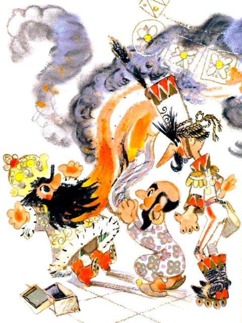 – Сейчас же зови! – глаза-пуговицы у царя заблестели. – Вон отсюда!», – гаркнул он на танцовщиц.