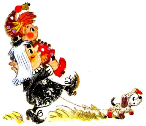 Петрушка подул собаке в дырявый нос, собака отряхнулась и завертелась вокруг него.