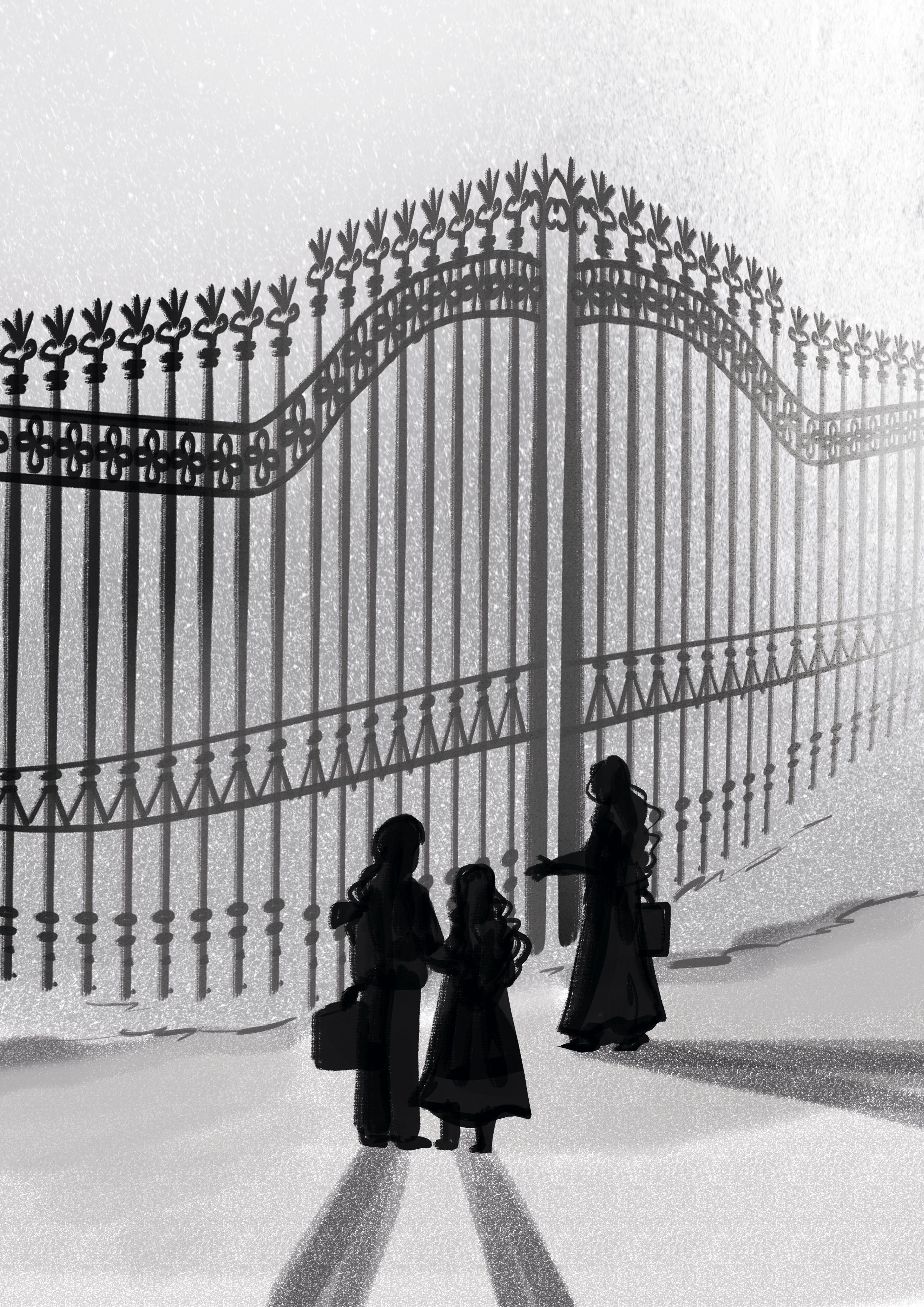 Время подходило к двенадцати дня, и на горизонте появилась чёрная резная карета. Она была зловеще красивая. Оконную раму обрамляли различные узоры, а сами окна были завешены черными бархатными шторами. Карету везла вороная лошадь, на которой была черная ажурная амуниция.
