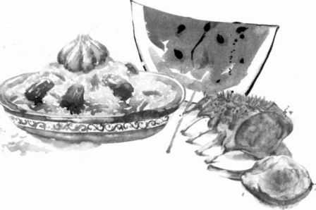 Вечером мы закусывали хомшурбо на бараньих ребрышках слезливым арбузом, пытаясь уговорить Героя России попросить у Путина гражданство.