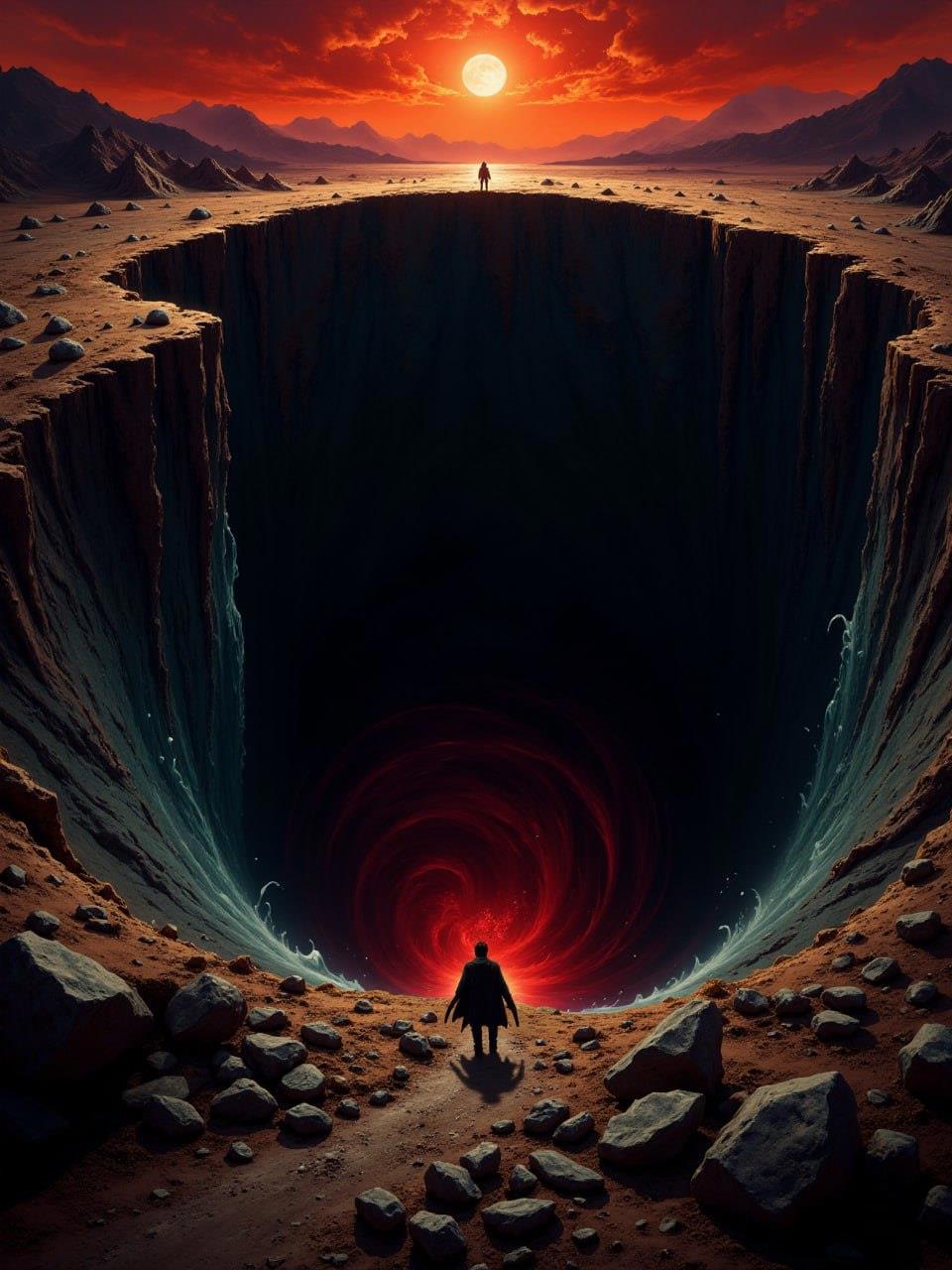 Клеон поднял глаза и застывшим взглядом смотрел на возвышающееся на три метра круглое образование, примерно три метра в диаметре, состоящее из бешено вырывающегося из воронки черного песка. Через силу он заставил себя всмотреться в волны песка, на огромной скорости, вырывающиеся из прохода.