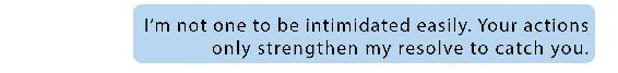 «Я не хочу, чтобы меня легко запугивали. Ваши действия только укрепляют мою решимость поймать вас.»