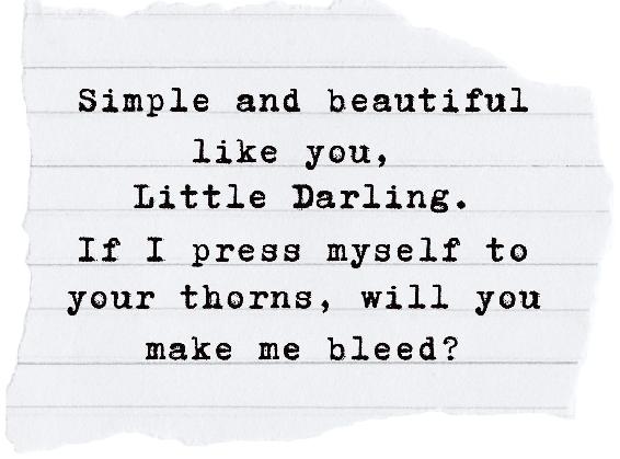 «Простая и прекрасная как ты, Малышка. Если я прижмусь к твоим шипам, ты заставишь меня истекать кровью?»