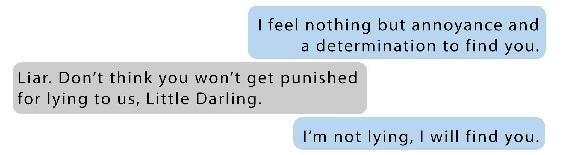 «Я не чувствую ничего, кроме раздражения и решимости найти тебя.»