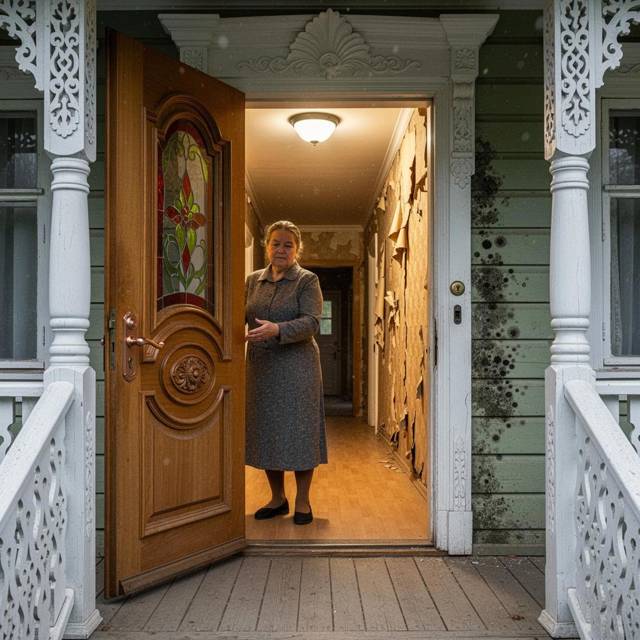 Мы поднялись на деревянное крыльцо с белыми резными перилами. Дверь была чудо как хороша: резная, с витражной вставкой и тяжелой ручкой, сияющей медным блеском. Ольга Сергеевна выбрала ключ из связки и толкнула дверь. Щелкнула выключателем на дощатой стене и посторонилась, безмолвно предлагая мне пройти первой. Вспыхнувший свет безжалостно озарил печальную картину. Пол все же новый, а вот стены… Остатки шелковых обоев, плесень, гнилые перегородки. Я прошла вглубь дома, щурясь.