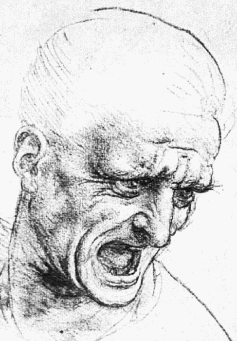 Леонардо да Винчи. Эскиз для фрески «Битва при Ангиари». Рисунок кричащего человека. Черный и красный мел поверх серебряного карандаша