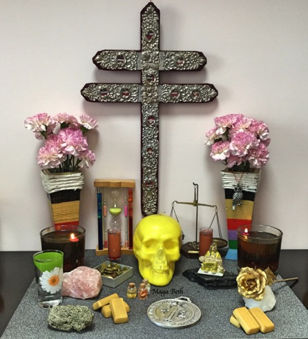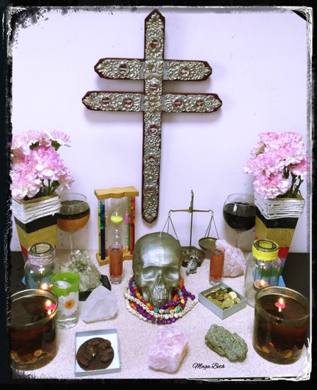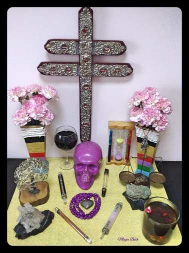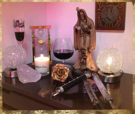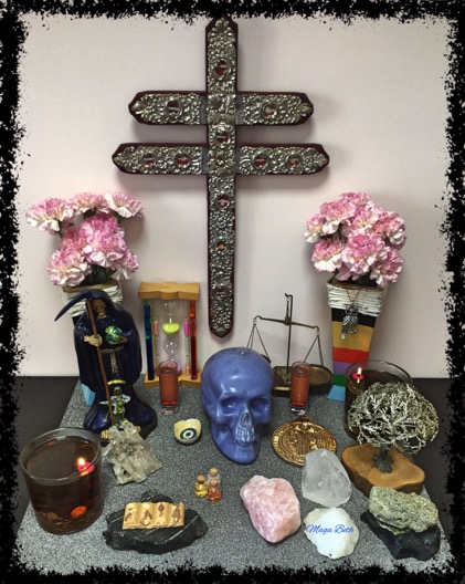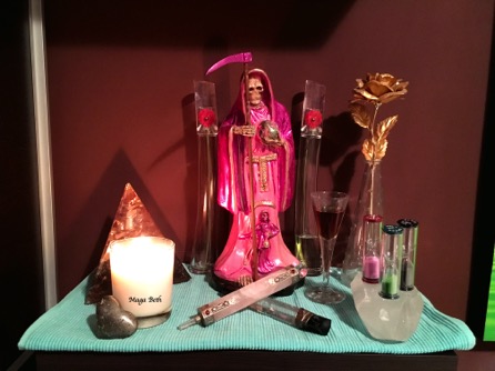 Adorer de Sainte Mort doit préparer un autel. Il représente la porte qui nous relie avec elle, pour attirer l'énergie de son royaume à notre monde. Il est un espace dédié aux objets trouvés et des images qui sous-tendent notre dévotion, il nous remplit spirituellement.