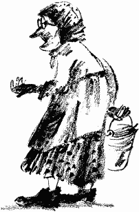 Скрипнула калитка, висевшая на одном гвозде, и показалась маленькая старушка с пустым ведерком.