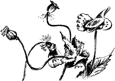 Вскоре их взгляду открылось большое маковое поле. Покачивая крупными головками, маки нежно алели сплошным ковром. Однако, приглядевшись, легко было различить рядки.