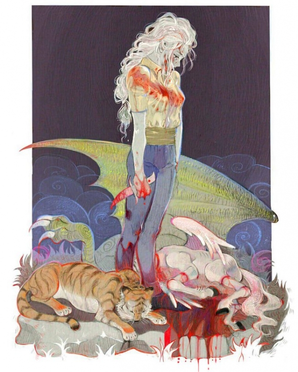 Крошка молча – звать зверей ей показалось кощунством – подошла и убила сначала дракона, потом – тигру, так, как он сказал. И осталась стоять около мертвых, слепо исчезнув на самом дне своего внутреннего убежища.