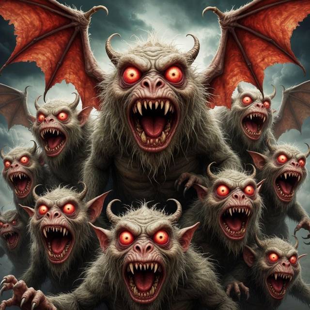 Все помещение заполнили дикие звуки, напоминающий клекот, визг, шуршанье, стрекот. Сверху ссыпалась стая тех самых жутких созданий, смахивающих на огромных летучих мышей, но с вытянутыми мохнатыми мордами, ярко-алыми злыми глазами и пастью с мелкими частыми зубами. Откуда они могли взяться тут?