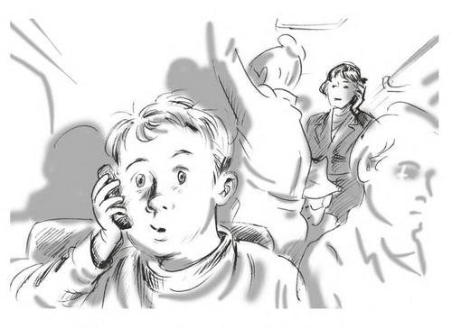 В этот момент пассажирка, стоявшая рядом с Павликом, ловко пристроила свою сумку прямо на голове, точнее, на шляпе сидящей дамы. Дама категорически не одобрила такой манёвр. Она возмущённо закричала: