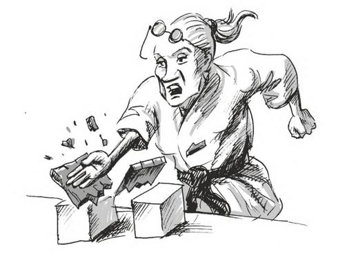 Она положила шоколад на стол, задумалась на пару секунд, а потом с криком «Кия!» ка-а-ак рубанёт ребром ладони злополучную плитку! Шоколад ка-а-ак разлетится на кусочки!