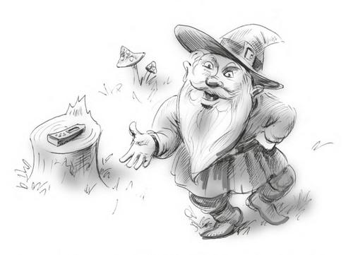 В Дальнем лесу жил гном Халявкин. Он был весёлый, общительный, но очень жадный.