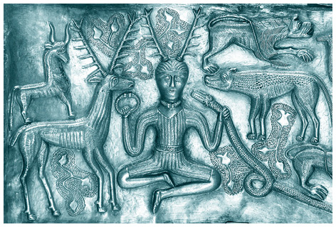 Рогатое божество с котла из Гундеструпа, Дания. Предположительно кельтский бог Кернунн/Кернуннос.