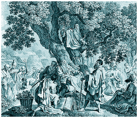 «Друиды, или Обращение бриттов в христианство». Гравюра С. Ф. Равенета, 1752, по Ф. Хейману.