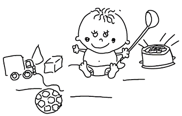 Дети очень любят размешивать что-либо ложкой в воде. Однако это не всегда получается: движения у ребенка пока еще резкие и жидкость норовит вылиться за пределы емкости. Помогите ребенку, поначалу двигая его рукой. Ребенку намного интереснее размешивать в воде вещества, которые окрашивают ее.