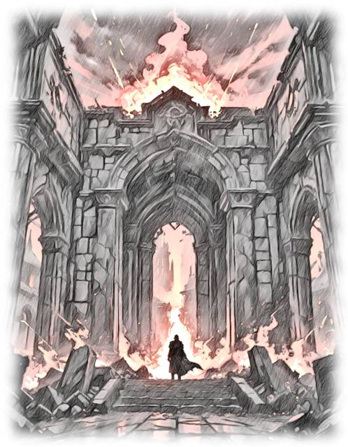 Храм пылал, и это было поистине величественное зрелище. Алые всполохи лизали древние фрески, каменные своды рушились один за другим, осыпая пол горящими обломками. Сквозь провалы в куполе виднелось кроваво-красное закатное небо – под стать происходящему здесь. Красиво, если не считать, что это последние минуты существования моего Ордена.