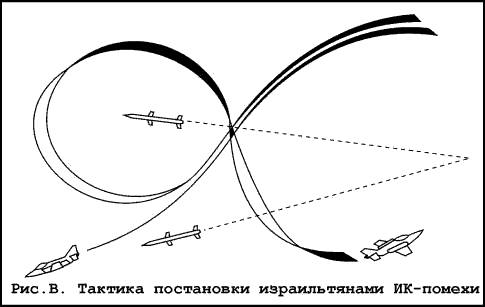 В. Израильские ВВС применяли различную тактику выброса ИК-ловушек для уклонения от ракет с ИК ГСН. Одна из тактик заключалась в применении двух самолетов, один из которых резко изменял направление полета вверх, а затем вниз, пересекая свою траекторию полета и таким образом генерируя область интенсивного нагрева. А тем временем, другой самолет летел дальше, отстреливая ИК-ловушки. Также, было замечено, что внезапный и энергичный маневр становился эффективным средством обороны, приводящим к введению в заблуждение ракеты.