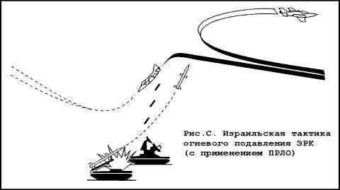 С. Еще одна израильская тактика уклонения от ЗУР противника. Первый самолет, выбросив ПРЛО для обмана РЛС противника, разворачивался назад, а другой с пикирования атаковал батарею противника.