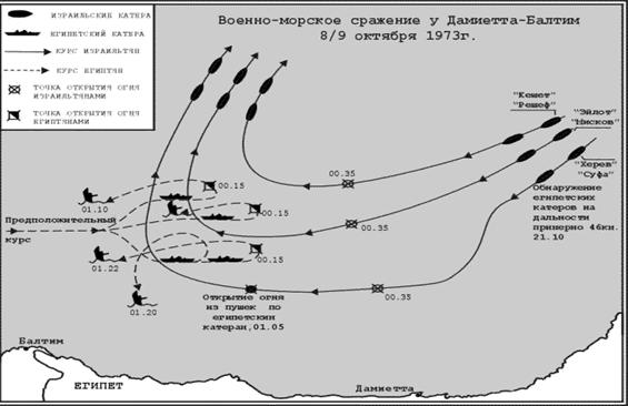 Соблюдая полное радио и РЛС молчание, израильские корабли шли прямо к египетскому берегу; работали только их пассивные средства РЭБ, то есть те, которые ничего не излучали (приемники СПО и РТР).