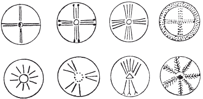Рис. 20.Солнечные мотивы на крышках лицевых урн из Восточной Померании