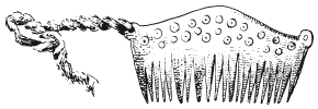 Рис. 22.Костяная расческа, привязанная шерстяным шнуром к кожаному плащу. Дробницкие болота в Мазурии, Восточная Польша
